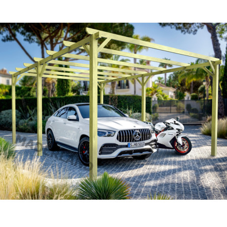 D’une superficie de 18 m², ce carport en bois massif traité autoclave permet d’aménager une zone de stationnement dans votre jardin. Ce bois très résistant apporte une touche naturelle à votre aménagement. Livré sans toiture.