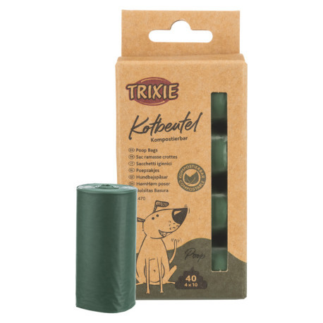 Ramassez les crottes de votre chien avec ces sacs vert forêt compostables. Vendu par rouleaux de 4 x 10 sacs, ce lot de sacs permet de recharger votre distributeur ou d’être utilisé à l’unité.