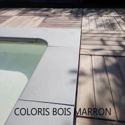 Fabriquée en France à partir de matériaux naturels, la dalle de terrasse apparence bois en coloris bois blanchi allie la beauté du bois et la robustesse de la pierre.