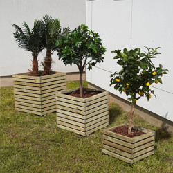 La jardinière en bois carrée permet de végétaliser votre extérieur en plantant quelques fleurs, des arbustes ou même quelques plantes potagères. Facile à mettre en place, cette jardinière est posée sur des lames pour faciliter l’écoulement des eaux de pluie.