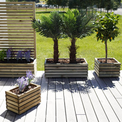La jardinière carrée permet de créer un extérieur végétalisé tout en conservant une touche naturelle grâce au bois.
