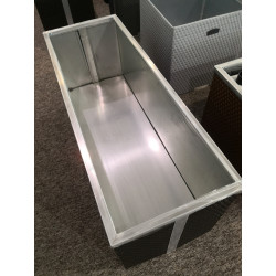 Mettez en valeur vos plantations avec notre jardinière en résine tressée de forme rectangulaire. Avec des bandes décoratives en aluminium, cette jardinière donnera une touche moderne et élégante à votre extérieur.