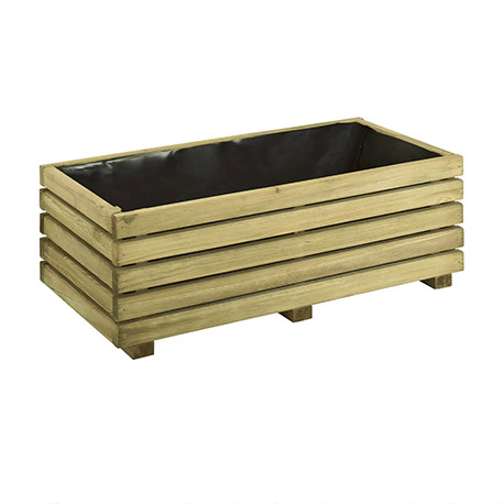 Fabriquée en pin traité autoclave, cette jardinière a une contenance de 64 L pour accueillir quelques fleurs, arbustes ou mêmes des herbes aromatiques. Disposant de pieds de 4 cm de haut, cette jardinière apporte un esprit naturel et chaleureux à votre extérieur.