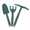 Lot de 3 outils de jardin à main : transplantoir, binette et griffe de jardin en polypropylène de couleur vert olive.