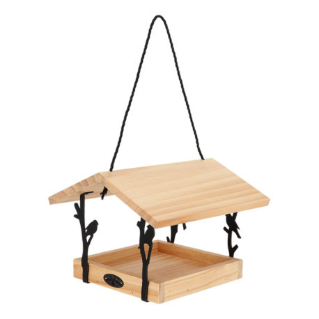 La mangeoire à suspendre en bois de pin et fer permet de nourrir les oiseaux du jardin tout en apportant une touche esthétique à votre jardin. Décorée avec des oiseaux sur des branches, cette mangeoire en bois contribue à la préservation des espèces.