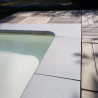 Coefficient de frottement (résistance au glissement) : pour les bords de piscine où il est normal de marcher pieds nus sur des dalles qui peuvent être mouillées, les margelles doivent remplir des conditions strictes se référant à la norme DIN 51097 et appartenir au groupe C (angle de la pente > à 24 °) Les résultats des essais confirment que nos dalles appartiennent au groupe C (angle de la pente 30°).