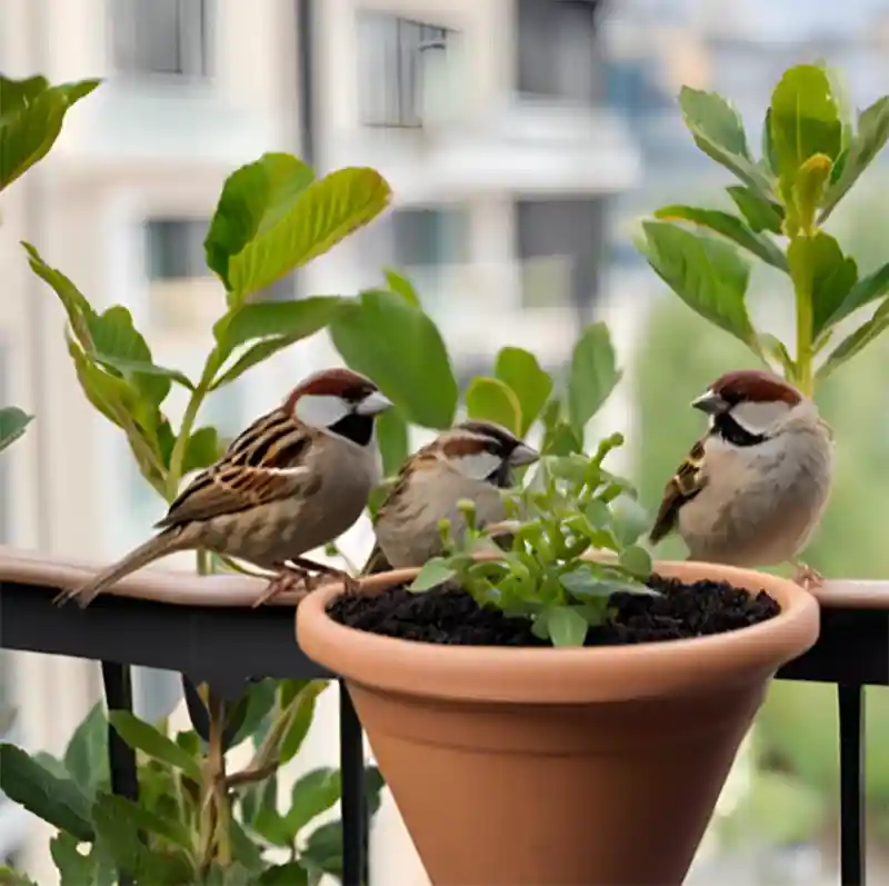 Fleurissez votre balcon : les petits-oiseaux, tels que les mésanges ou les moineaux, sont très attirés par les plantes non seulement par les graines qu’elles produisent mais aussi par les insectes qu’elles abritent. Attention : ne traitez pas vos plantes avec des produits nocifs !