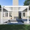 Pergola autoportée bioclimatique en aluminium de couleur blanche.
